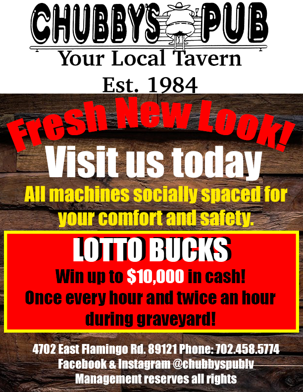Monthly Promotions Go backYour message has been sent Have a question or concern? Please contact us by filling out the field below. Someone will get back to you within 48 hrs. Name(required) Warning Email(required) Warning Message Warning Warning. Contact UsSubmitting form Δ Facebook Instagram Chubby’s Pub 4702 East Flamingo Rd. Las Vegas, NV 89121 702.458.5774 Share this: Click to share on X (Opens in new window) X Click to share on Facebook (Opens in new window) Facebook Like Loading...